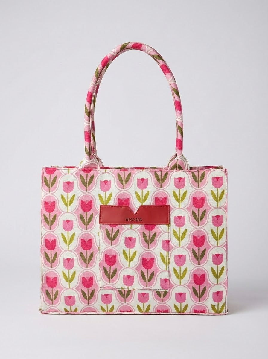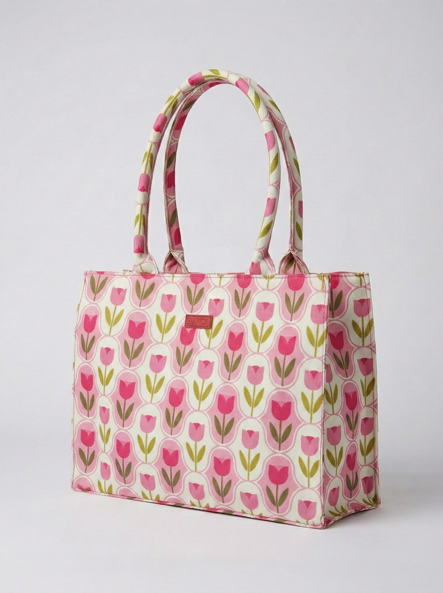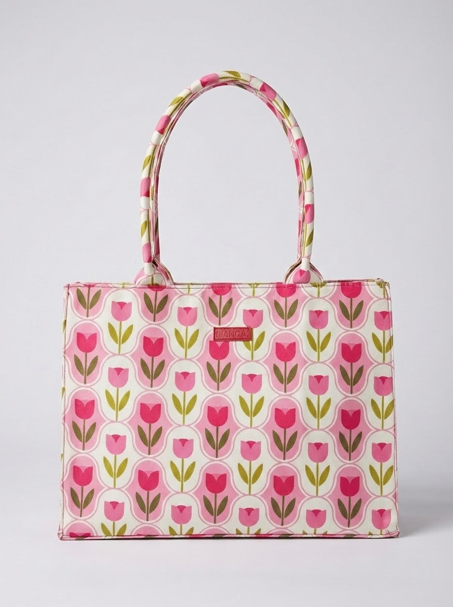 Tote Bag in canvas fabric with zip closure. Single compartment, two hand carry handles