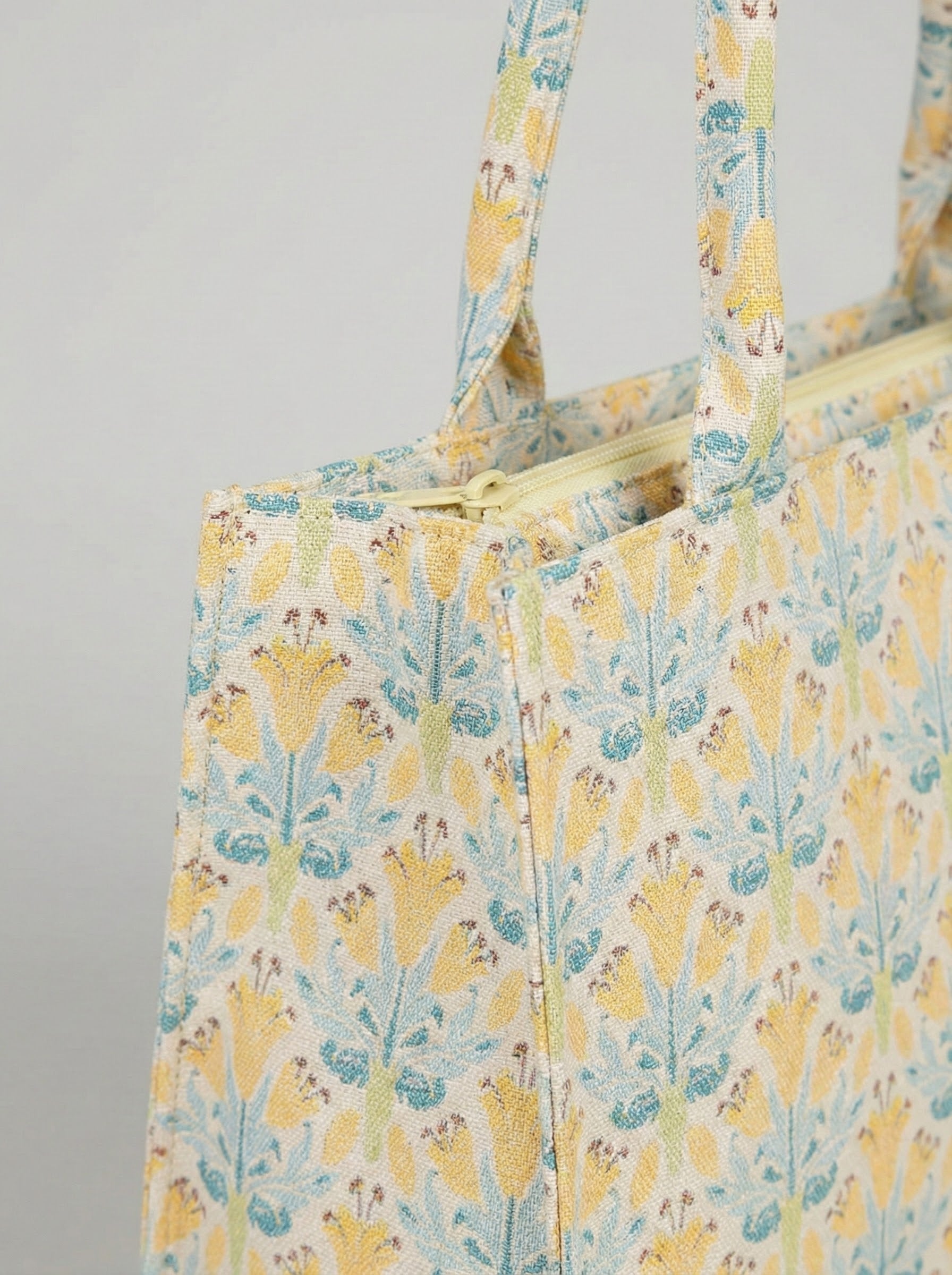 Tote Bag in canvas fabric with zip closure. Single compartment, two hand carry handles