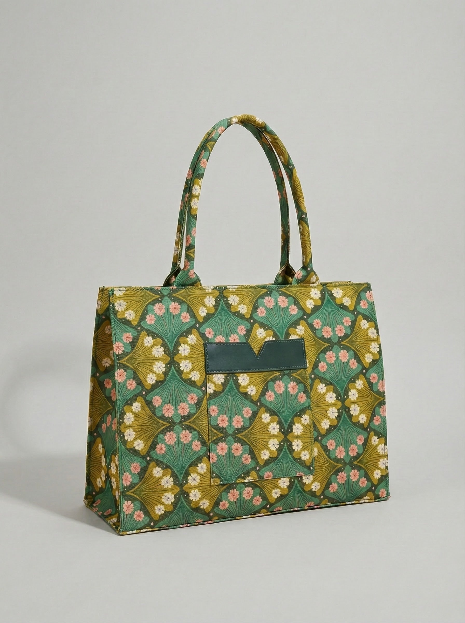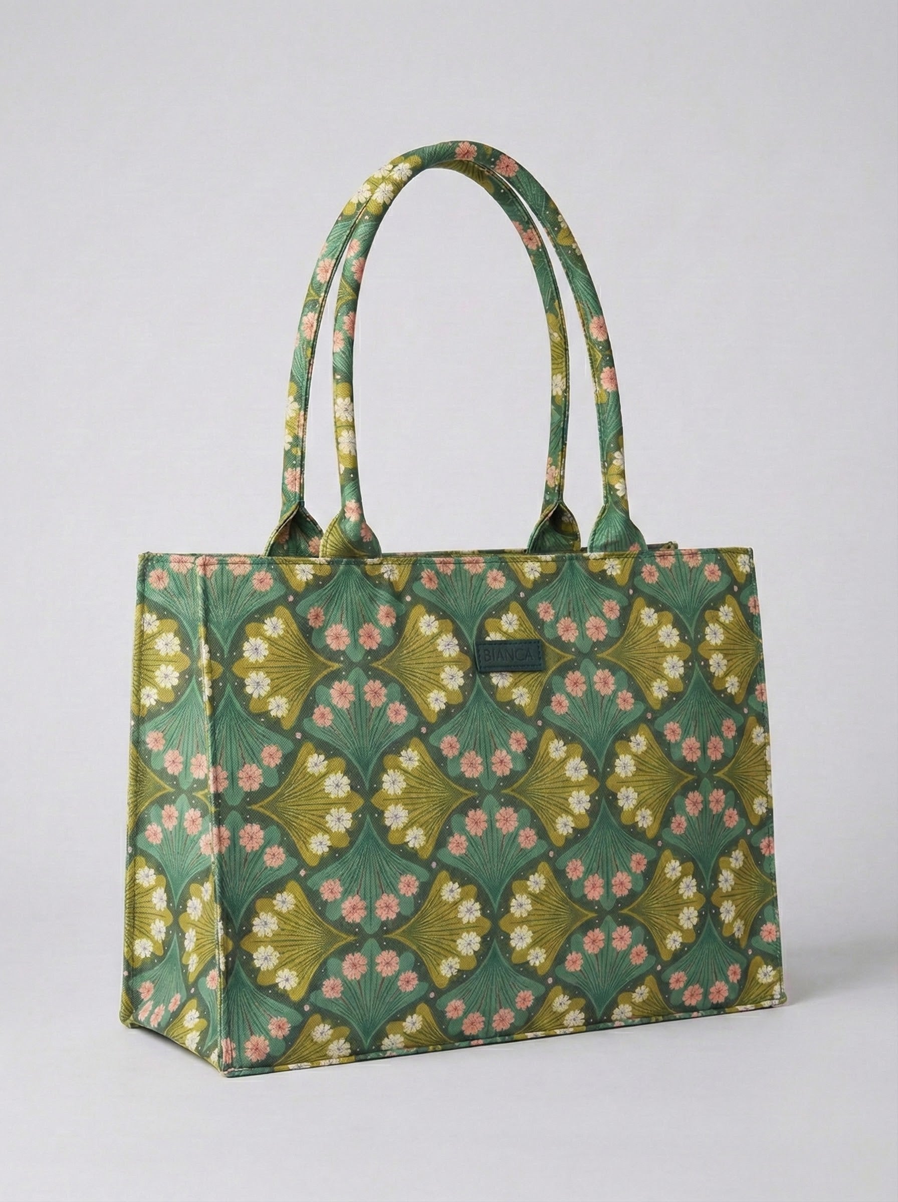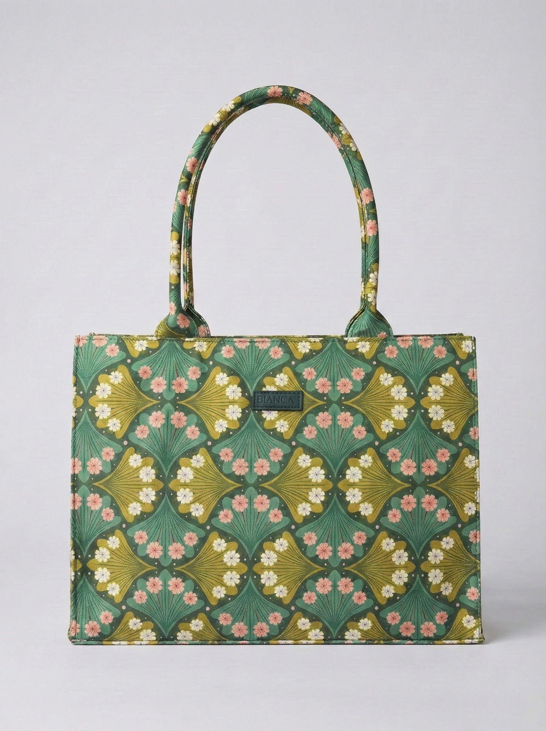 Tote Bag in canvas fabric with zip closure. Single compartment, two hand carry handles